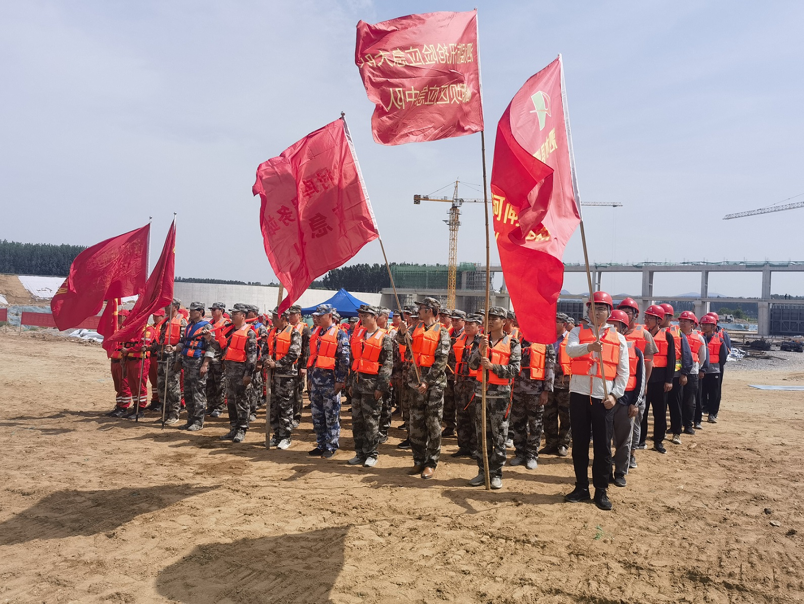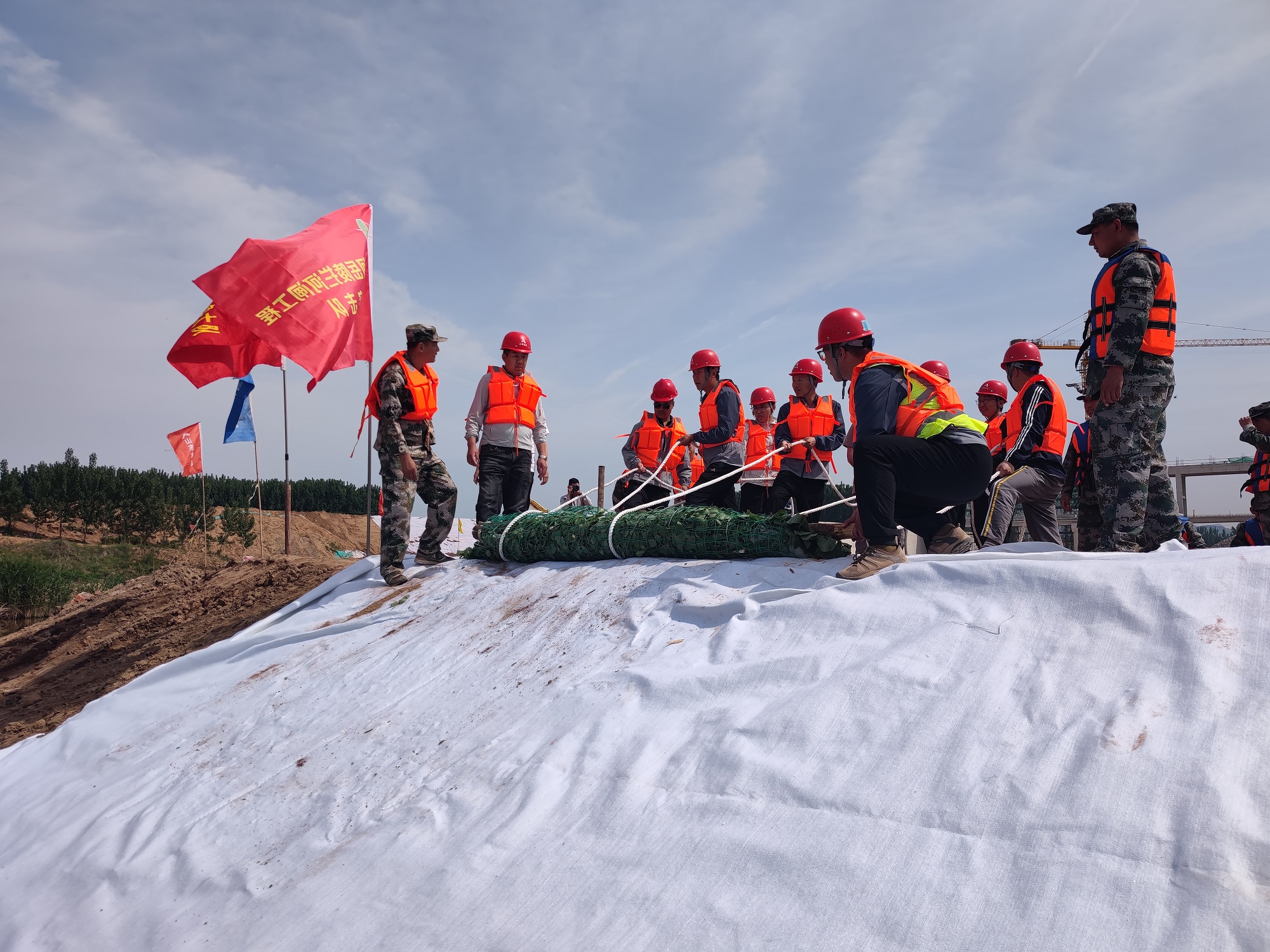 5月9日下午,第七分公司泗水县泗河岳陵拦河闸项目部联合泗水县水务局、泗水县应急局等单位开展了岳陵拦河闸工程防汛应急救援演练。本次模拟演练设置坝前坍塌抢护、坝后管涌抢护、增高子堰抢护3个演练场景。